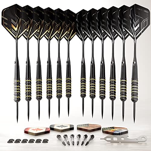 CC-Exquisite 12 X Darts Steel Tip Set 20/22g with 24 Flights & 18 shafts + Dart Tool, Rubber O-Rings – Fully Customizable