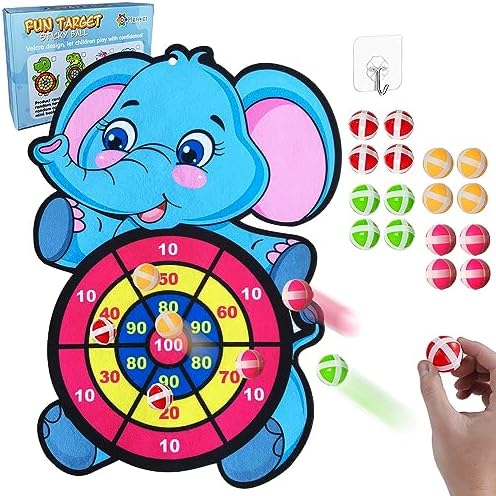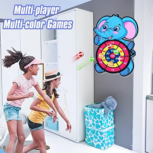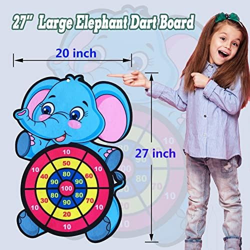 【27 inch Large Elephant Dart Board Kid Toy】Unlike others, this elephant target board has an oversized 27 INCH with durable and sticky soft fabric, can attach sticky balls firmly. Each dart board set contains 16 pcs sticky balls with 4 different colors to satisfy multi kids or team playing and race together.