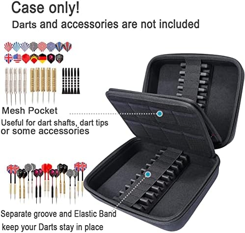 RAIACE Hard Storage Dart Case for 18 Steel Tip or Soft Tip Darts, Dart Carrying Case for Dart Tips, Shafts and Flights. (Case Only, Not Include the Darts) – Black